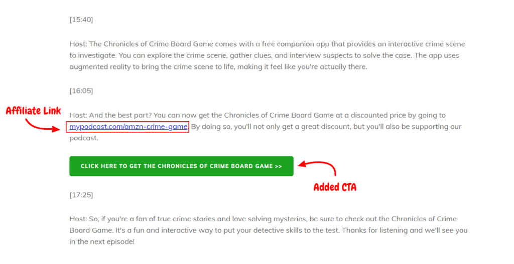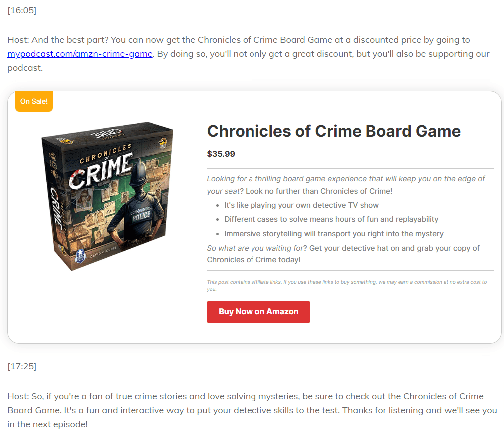 Want your transcript to be more than text and timestamps? Turn your affiliate link into an attention-grabbing product display: