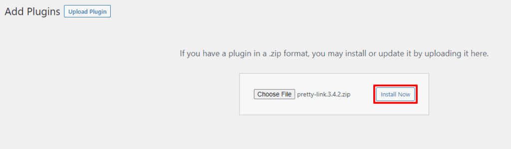 On this page, start by clicking the “Upload Plugin” button at the top. Then select the .zip file you downloaded just a moment ago. To wrap things up here, click “Install Now”, followed by “Activate”.