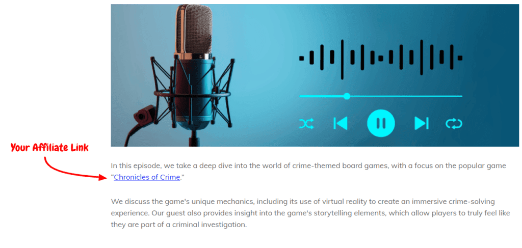 When listeners type in or click on your affiliate link, then follow through to make a purchase, you earn a commission.