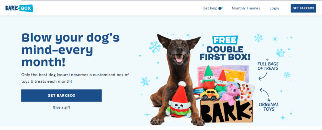 - BarkBox: BarkBox surprises pups monthly with unique themed boxes filled with toys, treats, and tail-wagging fun.
