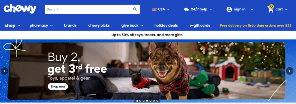 Chewy stands out as a pet parent’s dream online marketplace, boasting over 3,500 brands. It’s a one-stop-shop for a vast array of pet food, supplies, and pharmacy items, all focused on making pet care easy, affordable, and enjoyable. Their commitment to customer service and a seamless shopping experience also makes them a favorite among pet owners