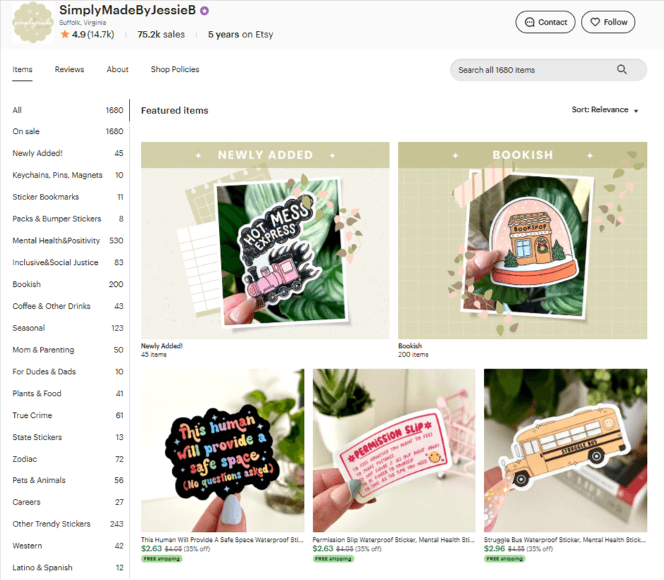 Etsy has become a go-to marketplace for handmade goods, vintage finds, and unique, small-batch products. It’s well-loved for its beginner-friendly platform that helps connect creative sellers with shoppers— without the technical hassle of setting up an online store.