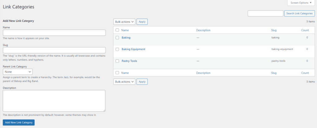 After you’ve filled out the necessary information, simply click the Add New Link Category button to create the category. It’s that easy!