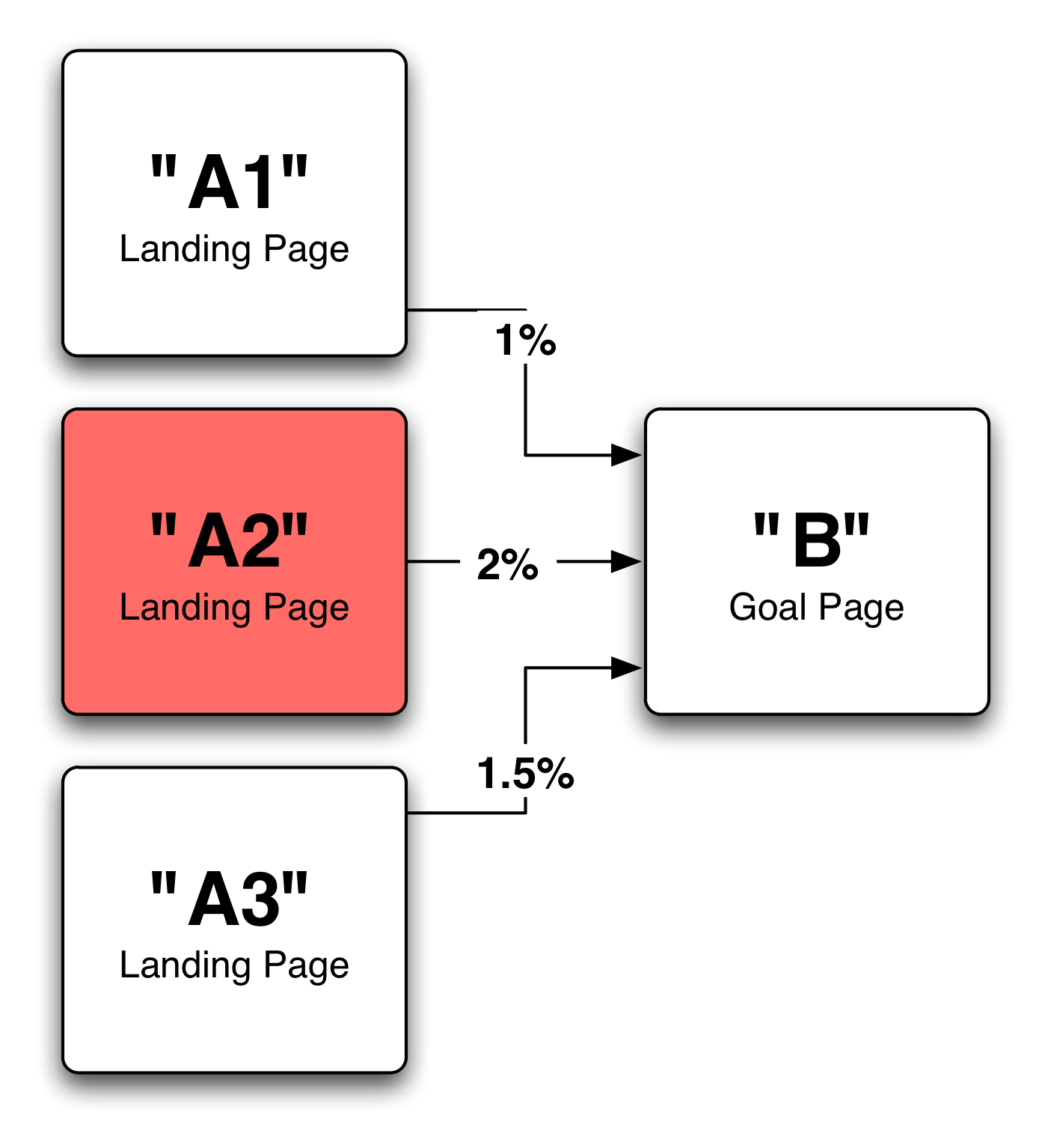 The really interesting data comes when you start analyzing multiple landing pages to see which one drives people to “B” the most. I’ve used this approach for monitoring which landing page in a PPC campaign is performing the best or which email landing page in a drip campaign (time-delayed autoresponder messages) is converting the best. It really helps me get a handle on which strategies are working and which aren’t.