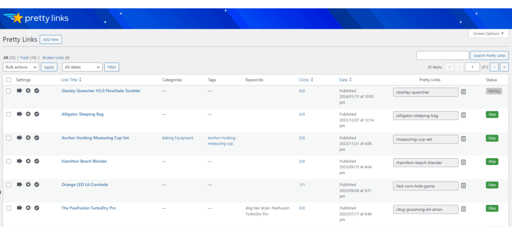 Aquí es donde PrettyLinks interviene como un salvavidas, ayudándole a mantener todos esos enlaces organizados, manejabley todo en un lugar fácil de encontrar:
