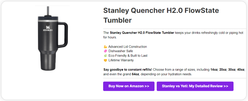 He aquí una herramienta PrettyLinks hecha especialmente para su kit de herramientas de marketing de productos: nuestro complemento Visualización de productos. Si desea que sus productos salten de la pantalla y capten la atención del lector, esto es exactamente lo que necesita para conseguirlo.