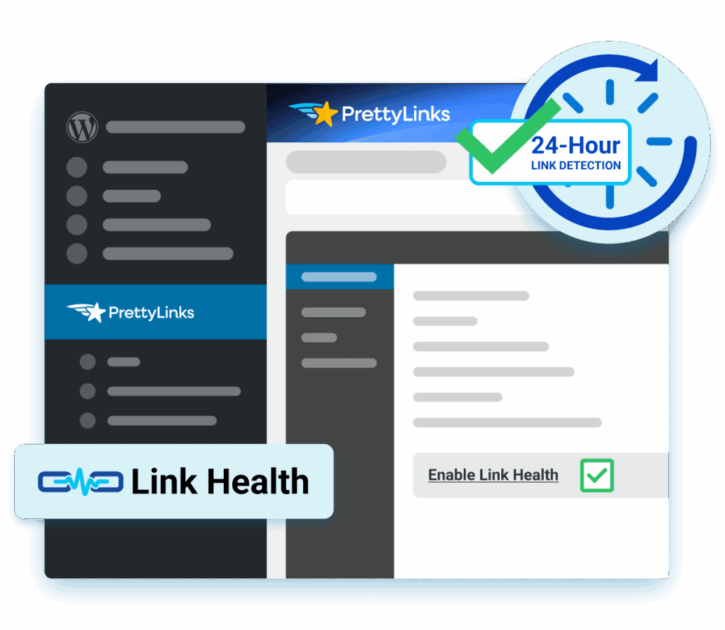 Link Health is built directly into PrettyLinks, letting you monitor the status of every URL while managing your collection and strategies inside WordPress.